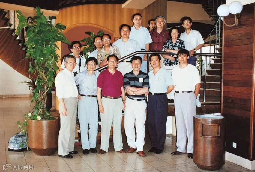 ▲1998年,许厚泽(前排左三)与参加塔西提岛亚太空间地球力学会(APSG)的中国同行合影
