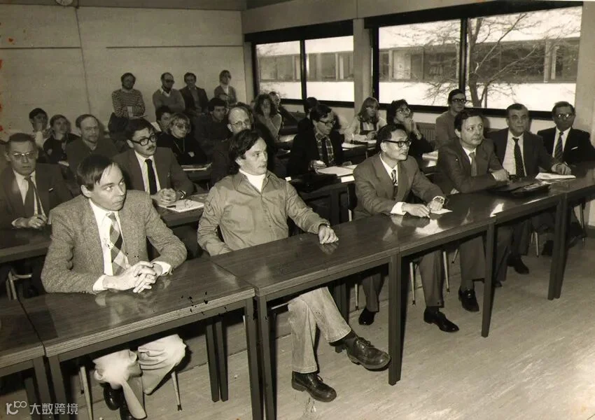 ▲1980年,许厚泽(前排左三)在比利时工作期间与鲁汶大学教授们一起听课