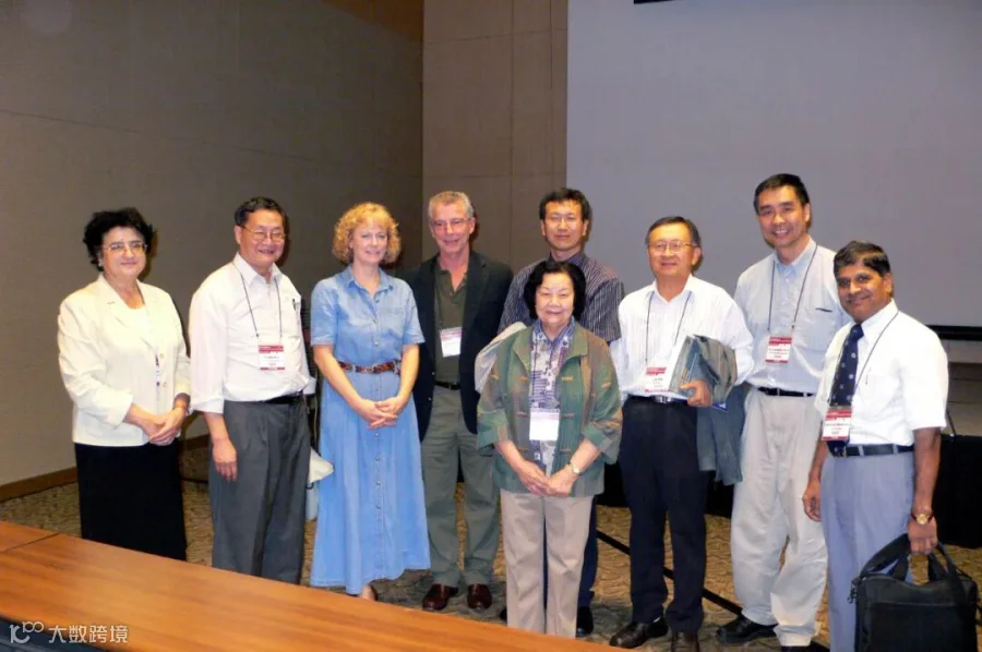 ▲许厚泽(左二)与参加在韩国济州岛举行的亚太空间地球力学会代表合影