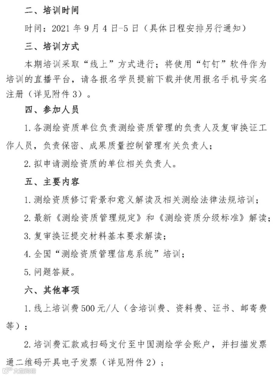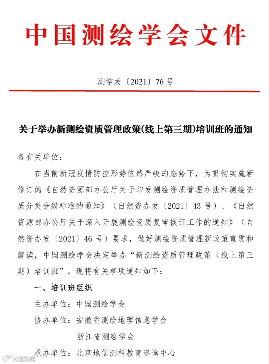 关于举办新测绘资质管理政策(线上第三期)培训班的通知