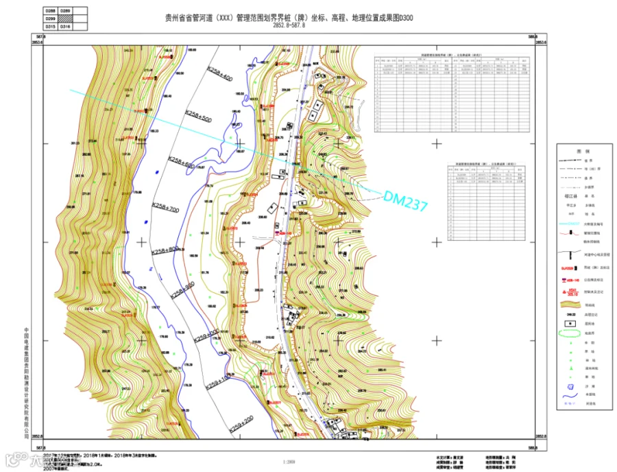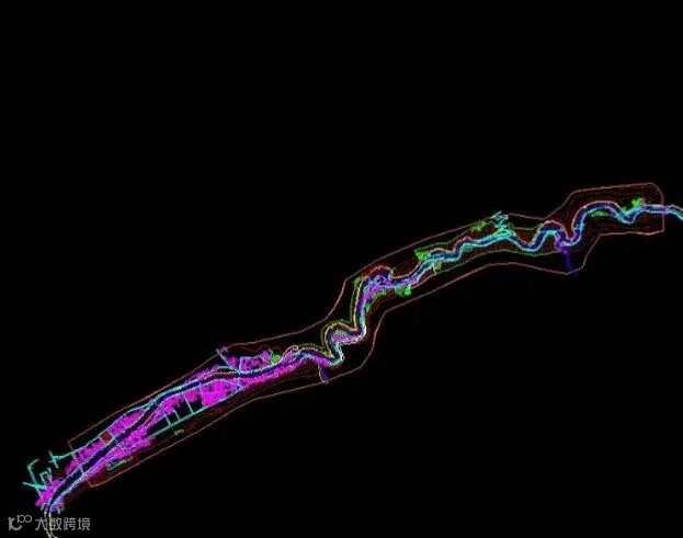 根据确定的划界标准,在一定比例尺的河道带状地形图上进行河道管理范围线绘制。