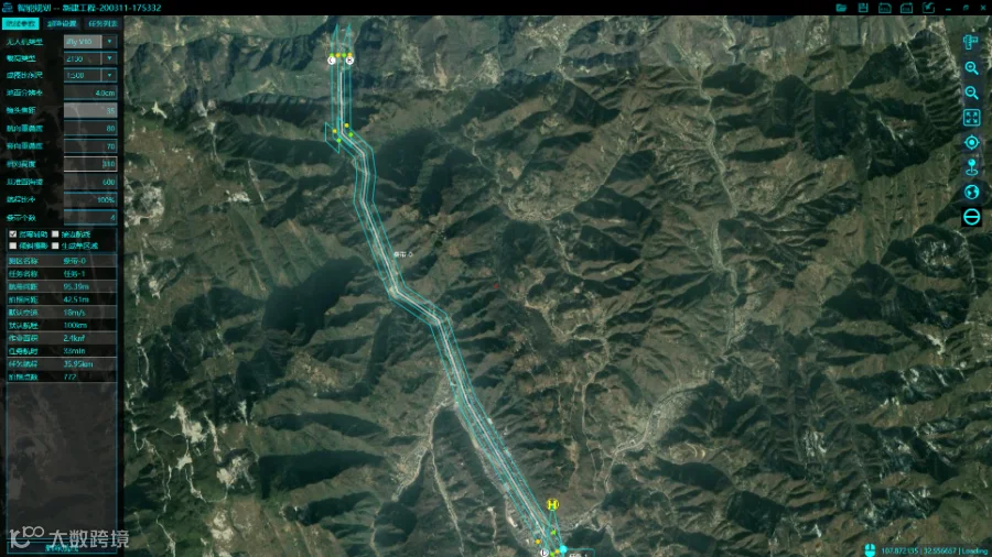 使用iFly智能航测助手进行航线规划,设置地面分辨率、航向重叠率、旁向重叠率、基准面海拔后,一键式生成最优航线。