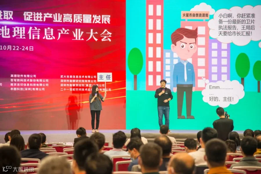 大会上,别具一格的“创新秀”让参会嘉宾近距离地感受到地理信息产业科技创新产品。中海达旗下子公司广州都市圈网络科技有限公司的“自然资源与空间规划百科全书”以生动有趣的小品,为参会嘉宾展示了地理信息应用的一种新成果形态,有效促进业界产学研用精准对接,助力产业高质量发展。