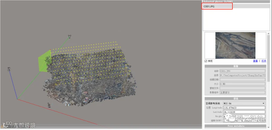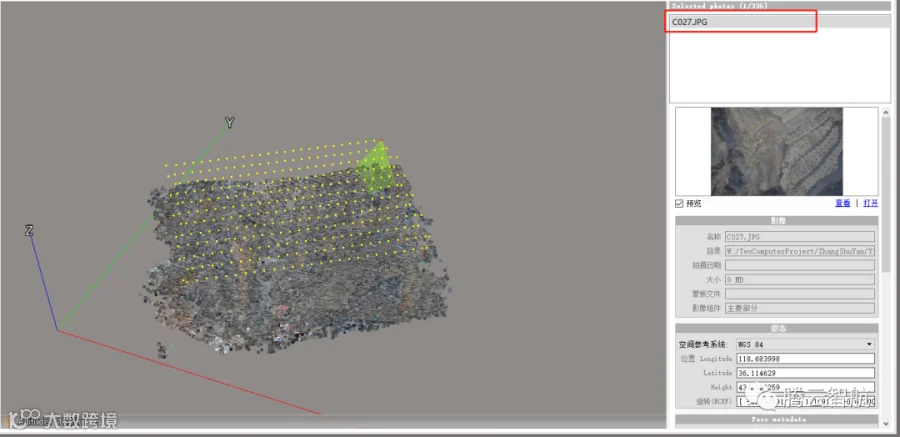 ▲下视影像第一条航线为从C001到C027
