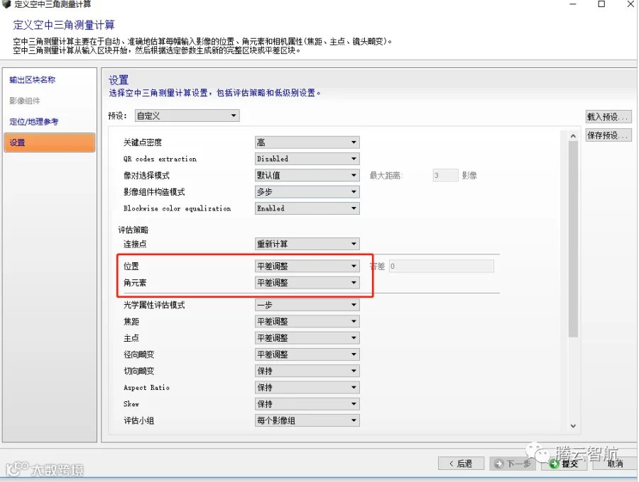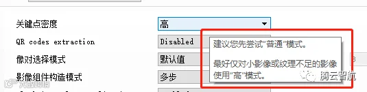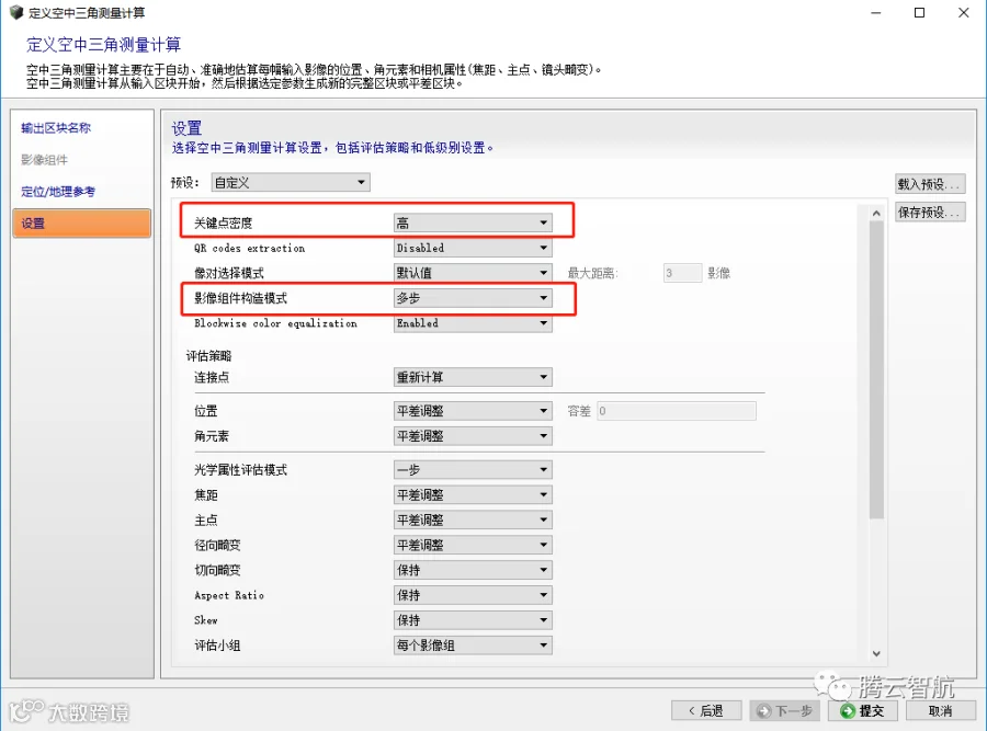 A、空三计算设置过程中将关键点密度设置为高影像组件构成模式为多步。