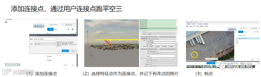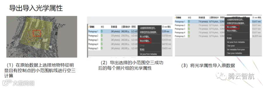 当数据量大时,将数据分为多个区块(注:区块之间有重叠区域或者公共控制点)进行空三计算,计算成功后,合并空三,再建模。