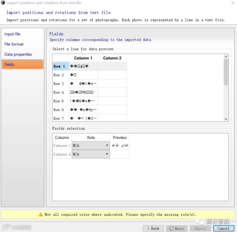 即为导入的pos表格式不对,当在photo中导入位置时,导入的pos表格式应为.csv或.txt格式。