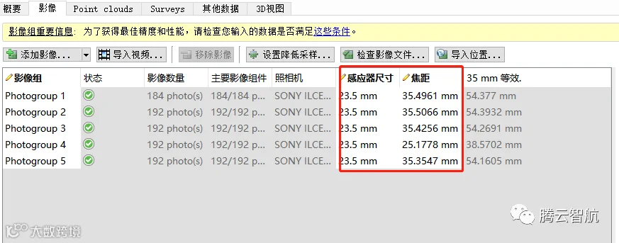 检查软件识别的焦距及传感器尺寸是否正确,如果不一致,则会出现空三结果位置错误。
