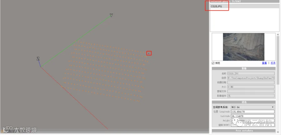 3D视图中控制点不在航线下,检查坐标系无误后,确认pos表的经度纬度或x,y坐标导入顺序是否有误,如没有问题,即为控制点坐标x,y顺序相反。