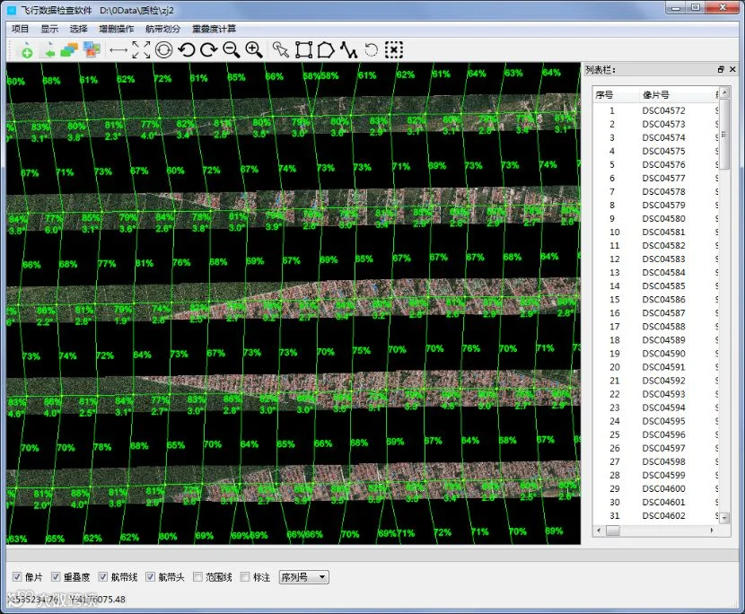 为用户提供一键化的自动检查像片重叠度,旋偏角,航高保持等影响内业生产质量的关键因素,减少人工交互。