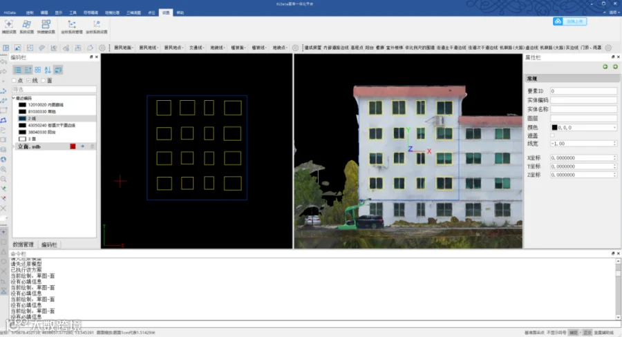 其次,通过ContextCapture软件进行实景三维建模,基于三维模型通过HiData软件进行立面测图,完成立面图制作。
