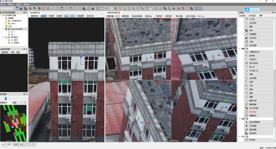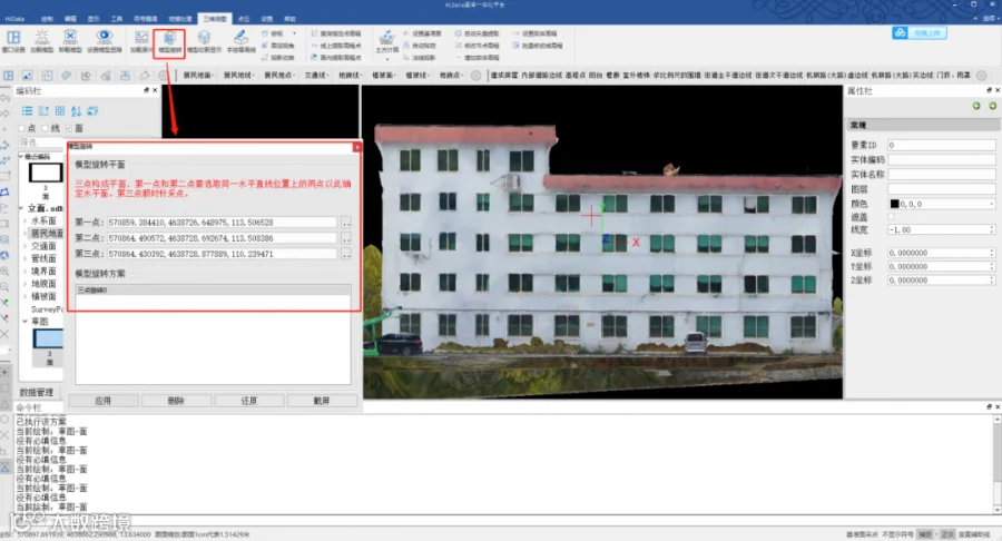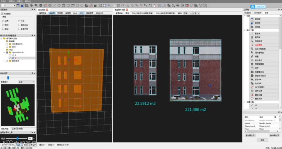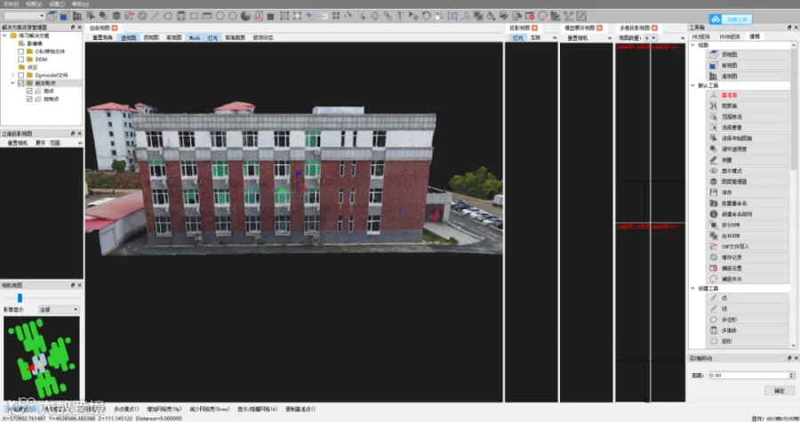 三维模型完成后,利用立面测量软件进行测量工作。目前市面上有两款立面测量软件较为常用,分别为“HiData”和“DP-Mapper”。为较为全面的分享中海达无人机系统在立面测量的应用,通过两种测量软件来给大家进行方案分享。