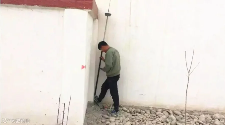 ▲新疆房地一体外业人员使用中海达iRTK5X进行房屋测量