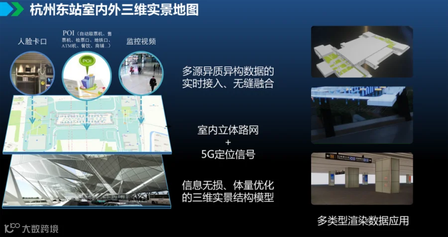 浙江中海达作为复杂综合体5G+时空智能服务的供应方,将为杭州东站建设首套完整的厘米级精度的实景增强三维模型,并融合新一代5G室内定位导航技术与通信服务。浙江中海达研发的系统将整合杭州东站现有人脸、卡口、视频资源,提供真实感实景体验的全息三维地图与精准定位基础上的应用服务,可有效提升民众的快进快出、定点定位、快速可达、导游导购体验,增强日常高效管理、应急响应与资源调度效率。