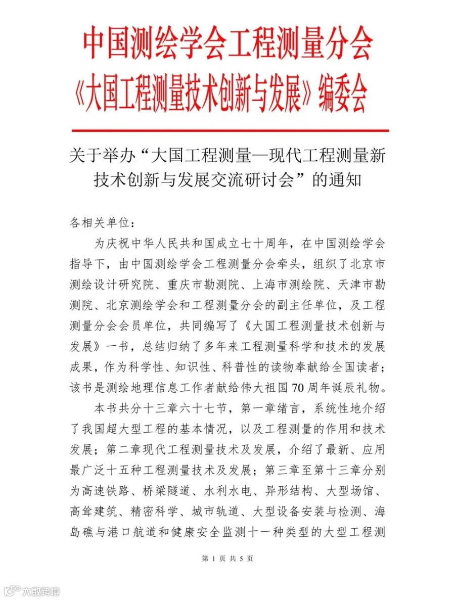 通知丨举办“大国工程测量—现代工程测量新技术创新与发展交流研讨会”的通知