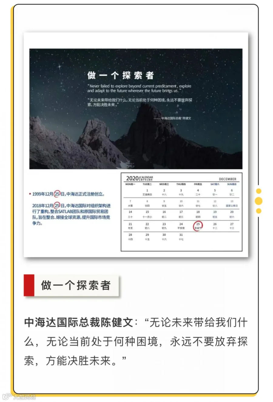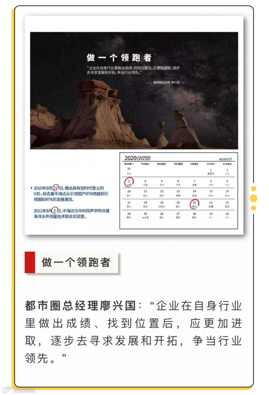 月历的尺寸设计采用21*21方型规格,寓意中海达与奋斗者们即将挽手前行,向第21个年头迈出新的步伐。
