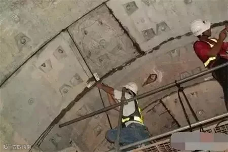 (1)清理螺栓孔内杂物与灰尘,在周边浇水湿润,凿除孔边松散混凝土,并凿成毛面,冲洗完后待没有明水时再封堵,封堵前须保持湿润;