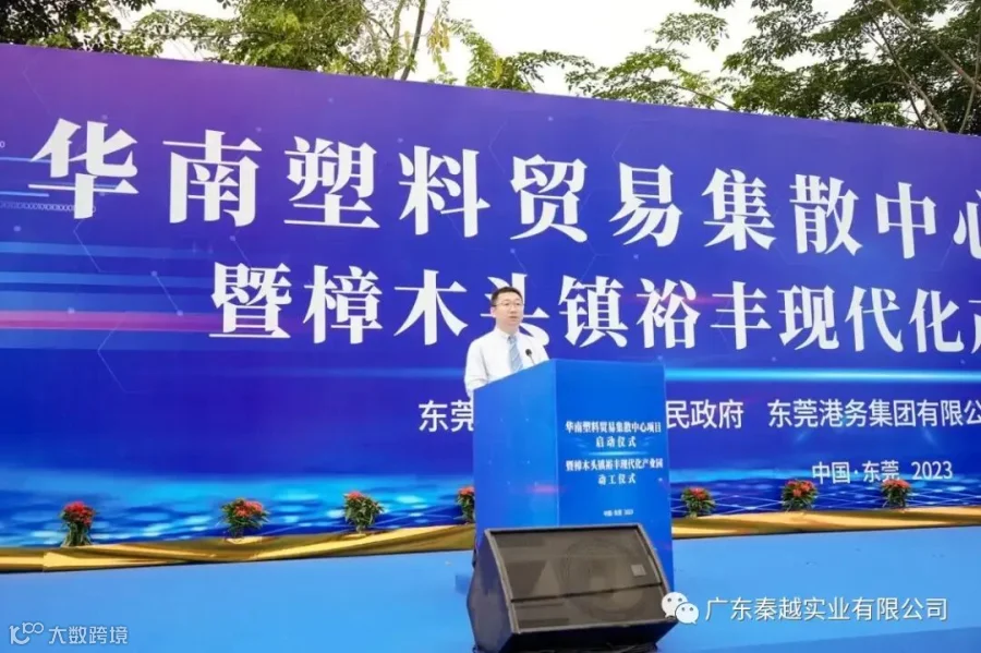 在2023樟木头塑胶产业国际博览会开幕式上,樟木头镇现代化产业园(重点项目)——华南塑料贸易集散中心项目投资协议举行签约,由樟木头镇政府联合市属国企东莞港务集团、塑料产业著名企业——广东秦越实业有限公司共同打造。樟木头塑胶产业的高质量发展离不开强化政策引导、创新支撑和要素保障。