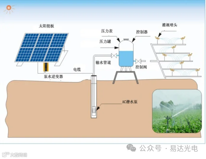 无蓄电池的直流光伏发电系统的特点是用电负载是直流负载,对负载使用时间没有要求,负载主要在白天使用。太阳能电池与用电负载直接连接,有阳光时就发电供负载工作,无阳光时就停止工作。系统不需要使用控制器,也没有蓄电池储能装置。无蓄电池的直流光伏发电系统的优点是省去了能量通过控制器及在蓄电池的存储和释放过程中造成的损失,提高了太阳能利用效率。这种系统最典型的应用是太阳能光伏水泵。