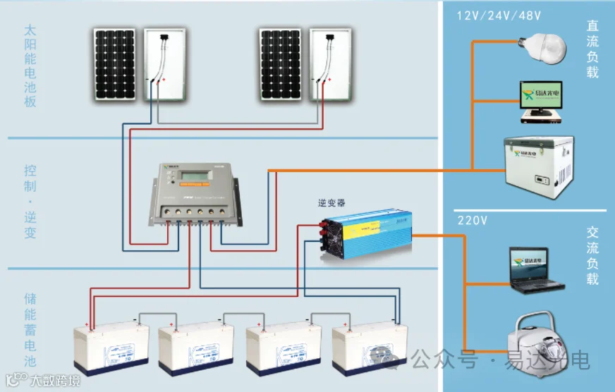 交流及交、直流混合光伏发电系统与直流光伏发电系统相比,交流光伏发电系统多了一个交流逆变器,用以把直流电转换成交流电,为交流负载提供电能。交、直流混合光伏发电系统既能为直流负载供电,也能为交流负载供电。