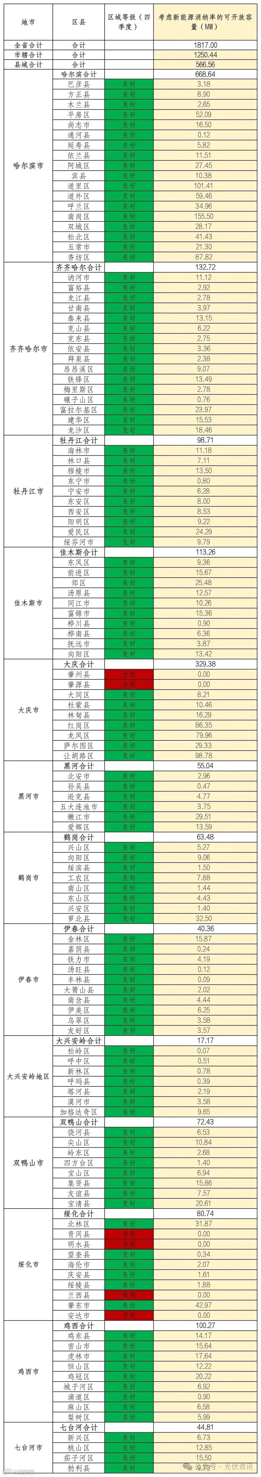 、黑龙江7省发布了全省2026年Q1的可开发容量情况。