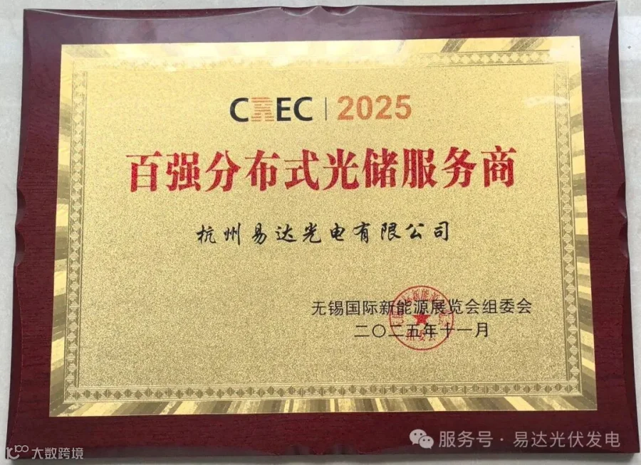在 2025 年分布式光伏占比提升至 50%、光储协同成为新能源标配的行业背景下,这一奖项不仅是对易达光电过往成就的肯定,更印证了企业在能源转型浪潮中的核心竞争力。