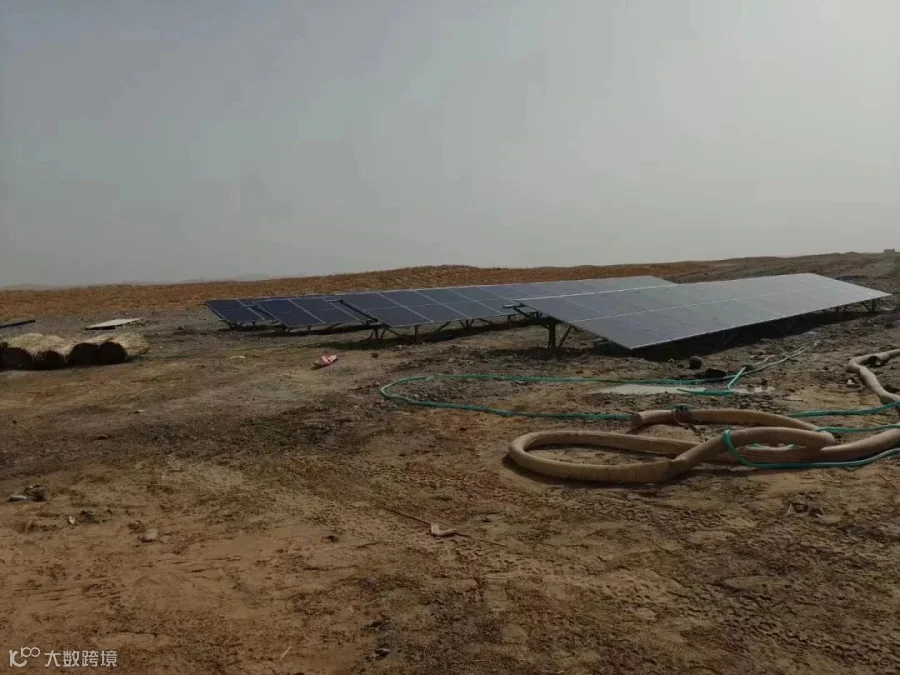 光伏水泵系统主要由光伏电池板、控制器、水泵以及水管等部件组成。其工作原理是直接将太阳能转化为运转所需的电能,从而驱动水泵抽水。阳光透过光伏电池板,将光能转化为直流电,再由控制器将直流电转化为交流电,驱动水泵运转。水泵将水从水源(如地下深井、河流、湖泊等,在沙漠地区主要是抽取地下水)抽取到需要的地方,再通过水管将水输送出去,为植被灌溉、人畜饮水等提供水源支持。这种系统无需外部电网供电,只要有阳光,就能实现自动抽水作业,尤其适合电网难以覆盖的偏远沙漠地区。