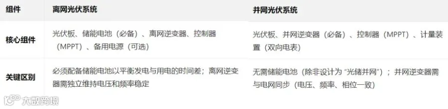 离网光伏和并网光伏是光伏发电系统的两种主要形式,核心区别在于是否与公共电网连接,以及由此衍生的系统构成、功能、适用场景等差异。以下从多个维度详细解析两者的区别: