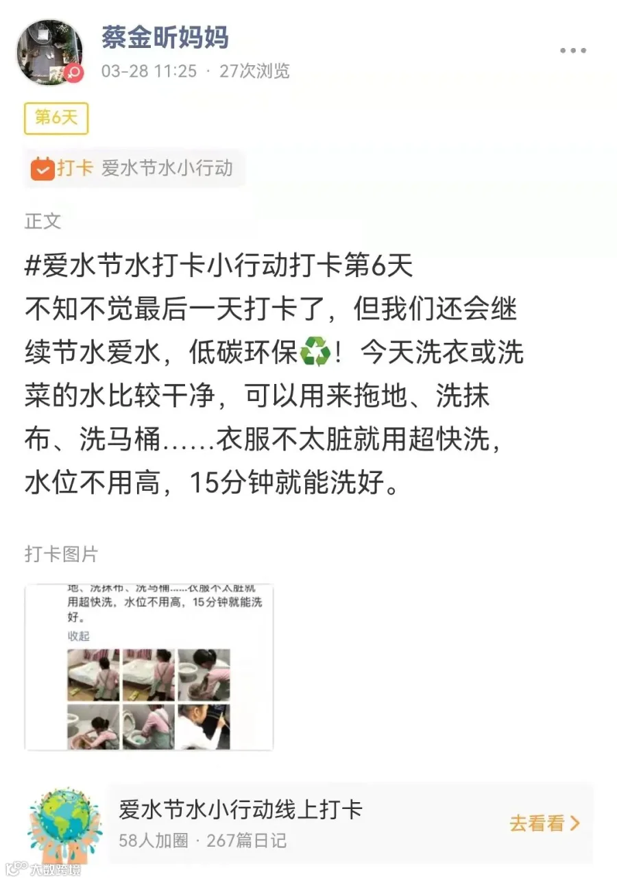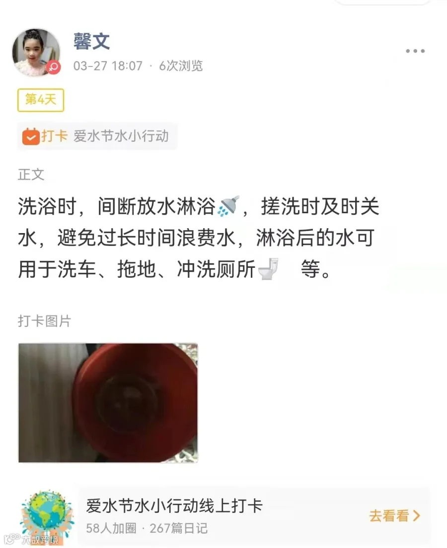 此次活动通过线上环保课堂、爱水节水小行动打卡的形式,让市民认识了水对人类的重要性以及水资源保护的迫切性,共吸引了一百四十余名市民参与本次活动。