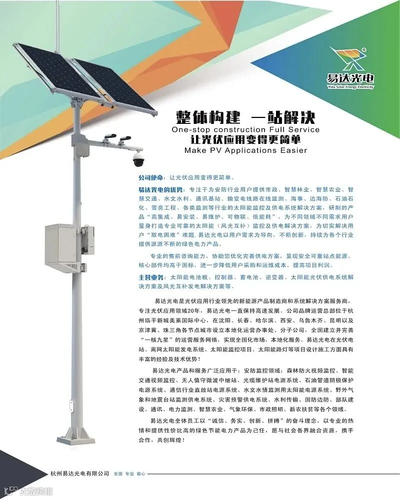 用于城市风光景区、旅游景区、自然保护区等,保障景区安全和管理 。 - 野外养殖户、种植户家庭供电