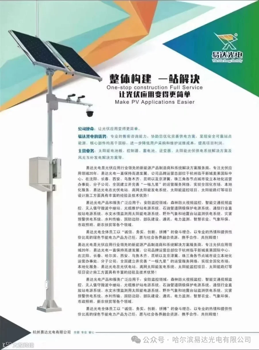安全监测设备供电:如水利工程中的监控摄像头、入侵报警系统等安全设备,也可以由光伏系统供电。这些设备能够实时监控水利工程的安全状况,防止人为破坏和非法入侵,保障水利工程的安全运行。 -