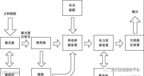 (1) 光—热—动—电转换方式通过利用太阳辐射产生的热能发电,一般是由太阳能集热器将所吸收的热能转换成工质的蒸气,再驱动汽轮机发电。前一个过程是光—热转换过程;后一个过程是热—动再转换成电最终转换过程,与普通的火力发电一样.太阳能热发电的缺点是效率很低而成本很高,估计它的投资至少要比普通火电站贵5~10倍。