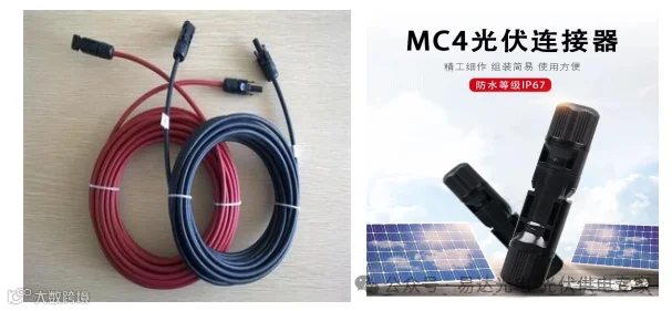 太阳能电池板连接辅件一般包括光伏专用线缆PV1-F4mm2,专用连接头MC4,分支连接头、延长线等
