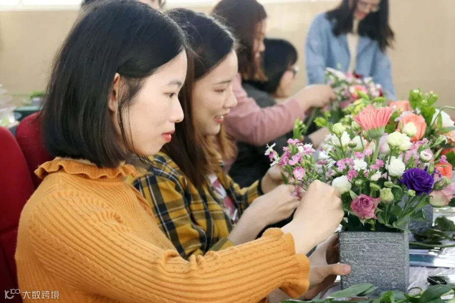 本次活动邀请花艺师授课。活动伊始,老师介绍了此次活动的花卉品种,并讲解了插花手法、花卉色彩搭配等基本技巧。