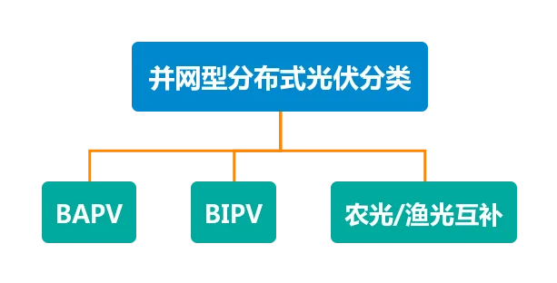 分布式光伏包括边远农牧区分散供电、屋顶电站、与建筑结合的光伏发电系统、农光互补/渔光互补系统,目前的分布式光伏发电一般是指并网型系统,不包括离网系统。因此,并网型的分布式光伏系统,大致可以分为三类:BAPV(屋顶电站)、BIPV(建筑一体化)、农光/渔光互补。