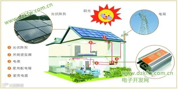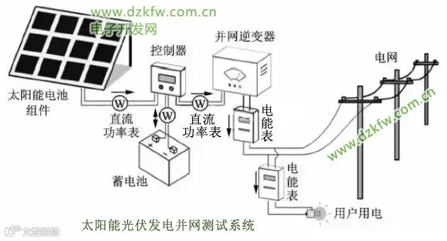 太阳能发电系统由太阳能电池组、太阳能控制器、蓄电池(组)组成。如输出电源为交流220V或110V并且要和市电互补,还需要配置逆变器和市电智能切换器。