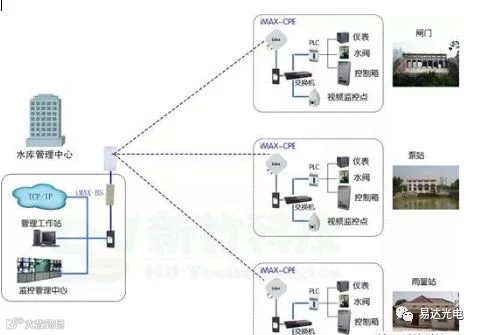 通过专用的iMAX高带宽无线网络系统,将水库监控区域中的每个接入点(如:泵站、雨量站、水文站、闸门等)的网络进行互联。通过此网络,将采集的数据信息(如雨量、风力、流量、流速、水质等)和高清IP视频监控信息等一并传输到指挥中心,同时,可以实时地将各种控制信息传输到现场的仪器和设备,实现闸门、泵站的远程智能控制。水库日常管理效率得到提升,在防汛抗洪调节水量时更能发挥重要的作用。