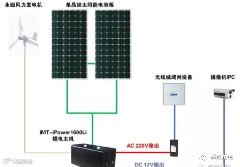 典型的新能源+无线城域网+高清视频监控的前端监控点拓扑示意图: