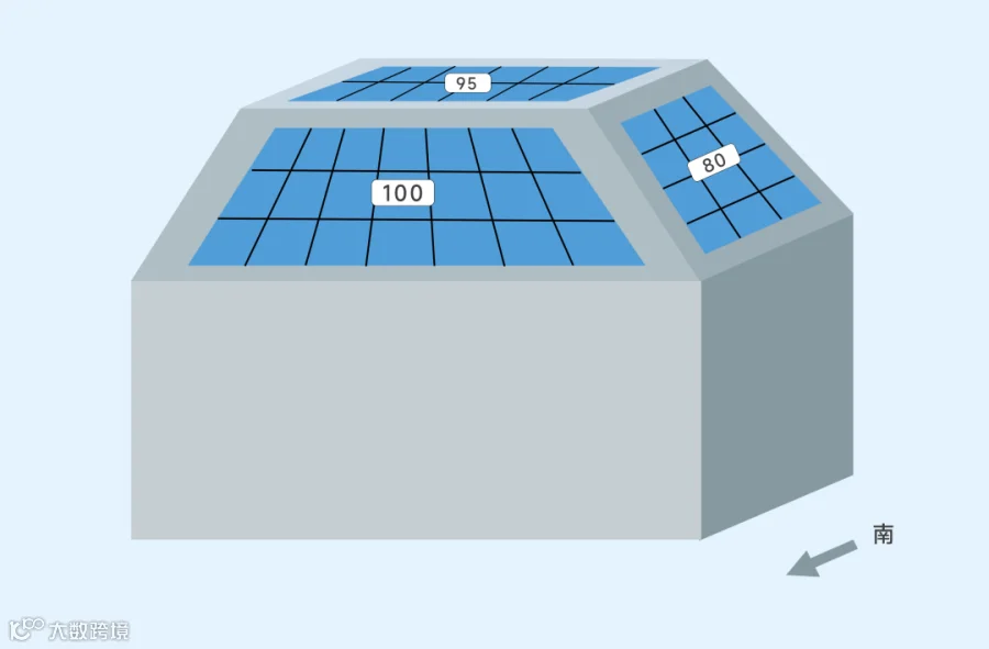 一般来说,北半球正南朝向和最佳倾角条件下系统发电效率最高。然而,在实际应用中,尤其是分布式光伏中,受到建筑布局条件和场景面积的限制,光伏组件往往无法全部以最佳朝向及最佳倾角安装,组件多朝向已成为分布式屋顶光伏系统发电量痛点之一,因此如何避免多朝向带来的发电量损失,成为了行业发展的又一难题。