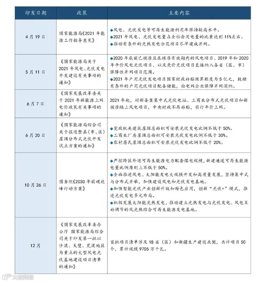 2021年太阳能发电行业相关国家政策