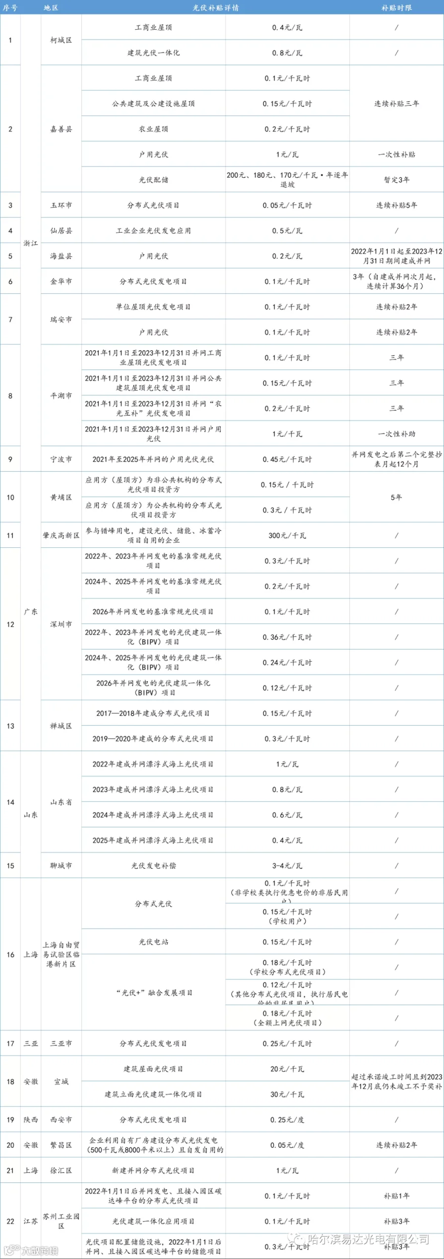 此外,在碳达峰、碳中和目标要求下,小编统计2022年开年来已有不少于22地发布光伏补贴政策,以支持本地光伏行业发展,多为工商业屋顶、户用光伏、BIPV等分布式光伏补贴