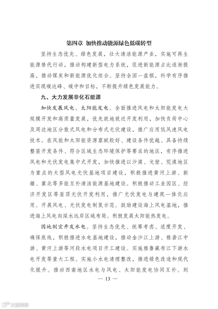在风能和太阳能资源禀赋较好、建设条件优越、具备持续整装开发条件、符合区域生态环境保护等要求的地区,有序推进风电和光伏发电集中式开发,加快推进以沙漠、戈壁、荒漠地区为重点的大型风电光伏基地项目建设,积极推进黄河上游、新疆、冀北等多能互补清洁能源基地建设。
