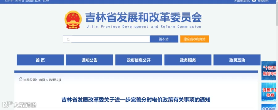 同日,吉林省发改委发布了《于进一步完善分时电价政策有关事项的通知》,引导电力用户削峰填谷,改善电力供应状况。本通知自2022年1月1日起执行。