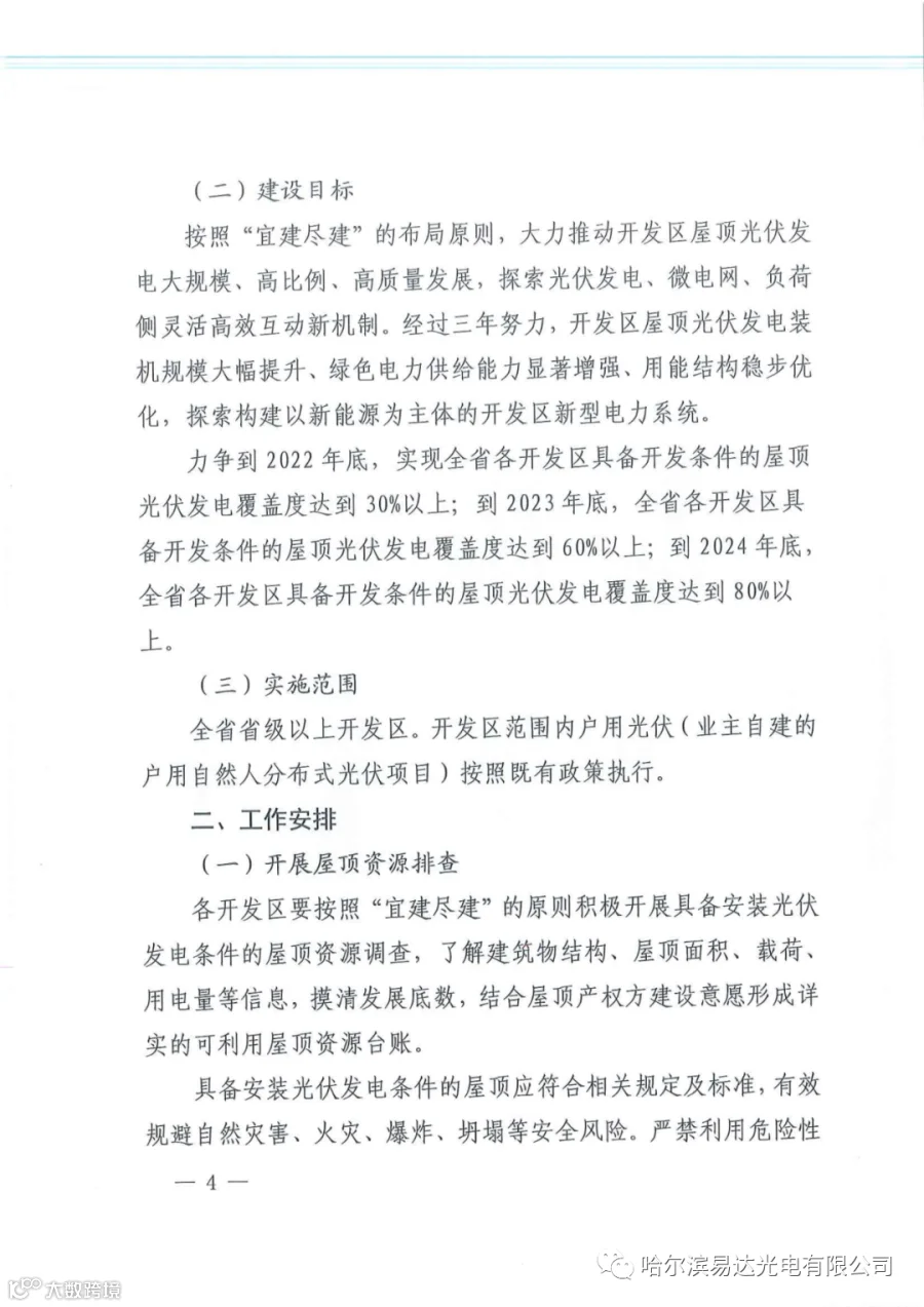 到2022年底,实现全省各开发区具备开发条件的屋顶光伏发电覆盖度达到30%以上;到2023年底,全省各开发区具备开发条件的屋顶光伏发电覆盖度达到60%以上;到2024年底,全省各开发区具备开发条件的屋顶光伏发电覆盖度达到80%以上。
