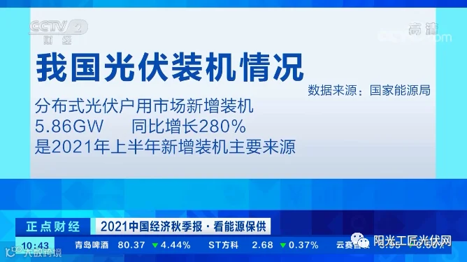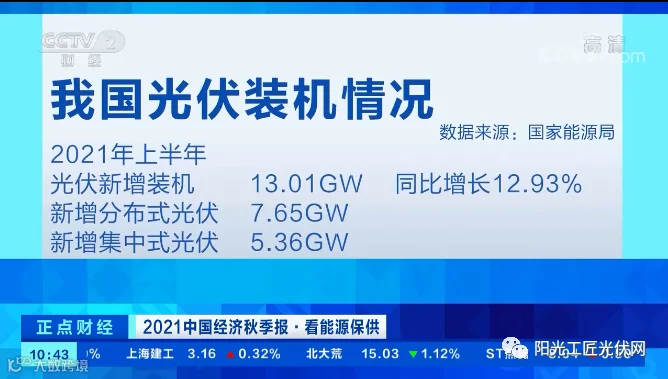 国家能源局数据显示。2021年一至六月,我国光伏新增装机13.01GW,同比增长12.93%,其中分布式7.65GW,集中式5.36GW。在分布式中户用市场新增装机5.86GW,同比增长280%,是上半年新增装机的主要来源。