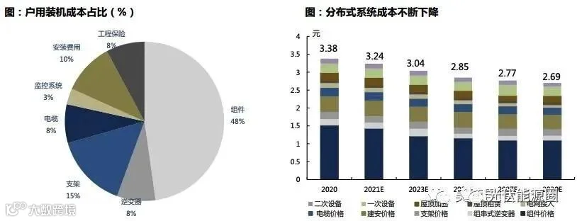组件价格大趋势向下,分布式系统度电成本不断下降,户用投资收益逐步显现。