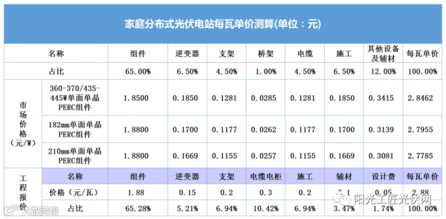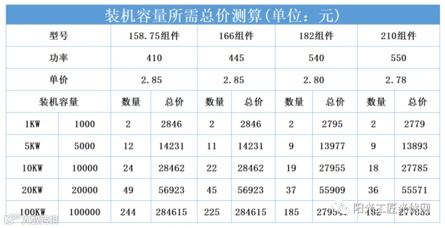 装机容量总价的计算方式为:总价=每瓦单价×组件功率×组件数量