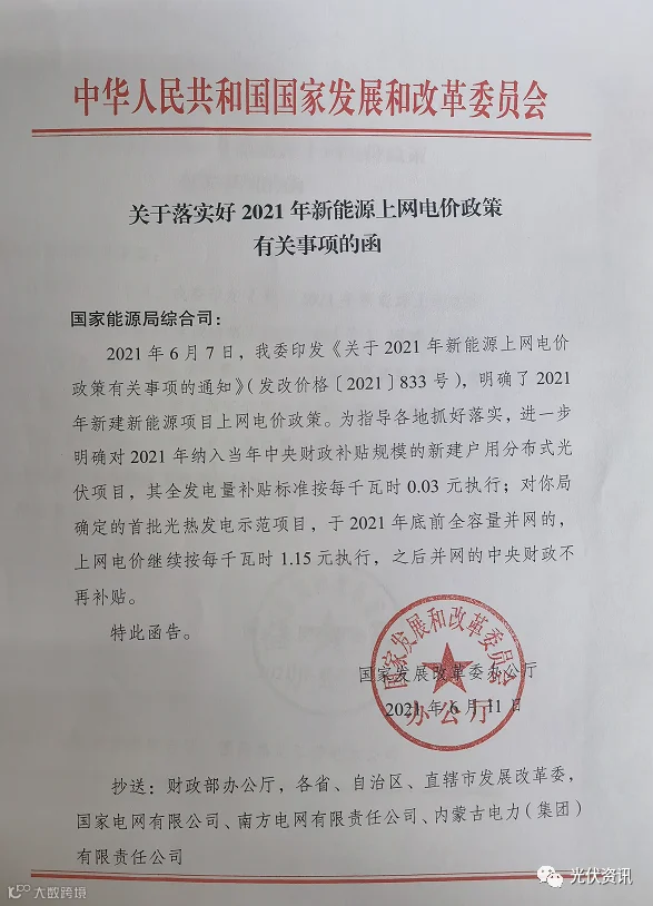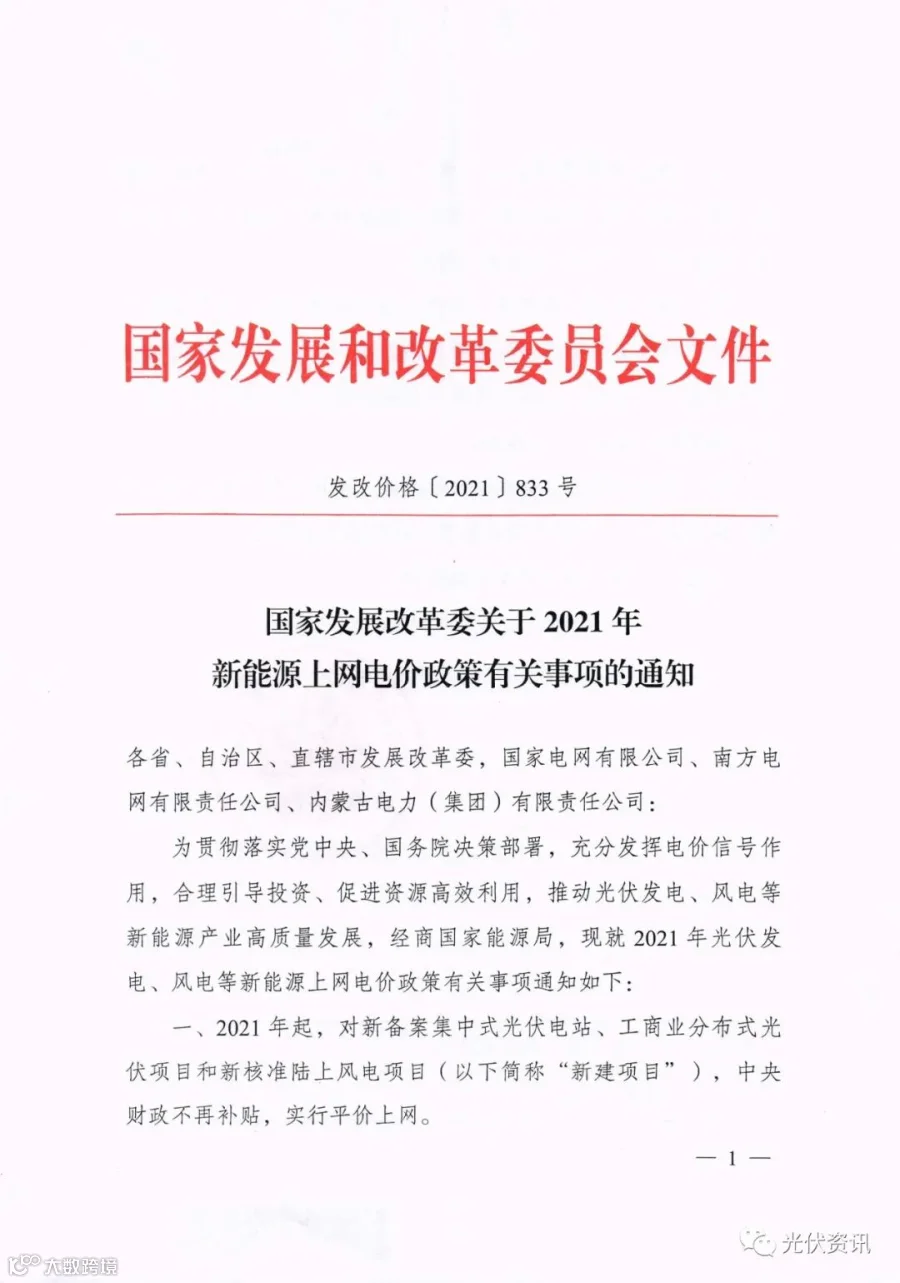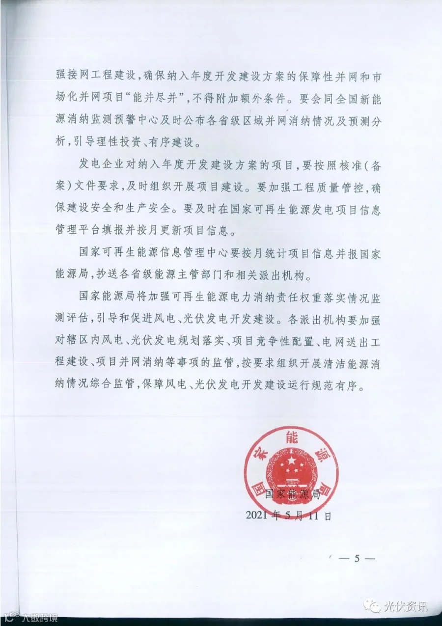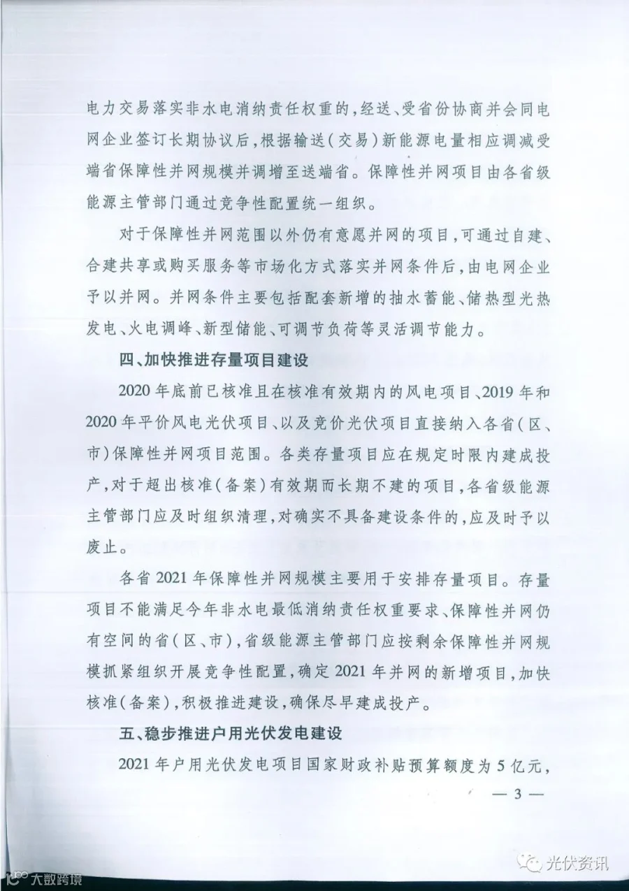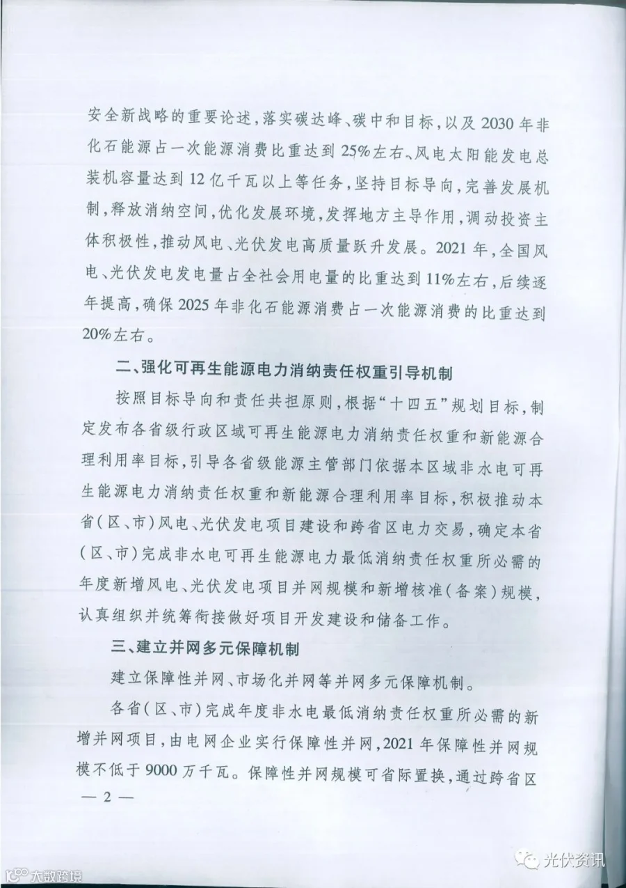 第一个文件:《关于2021年风电、光伏发电开发建设有关事项的通知》