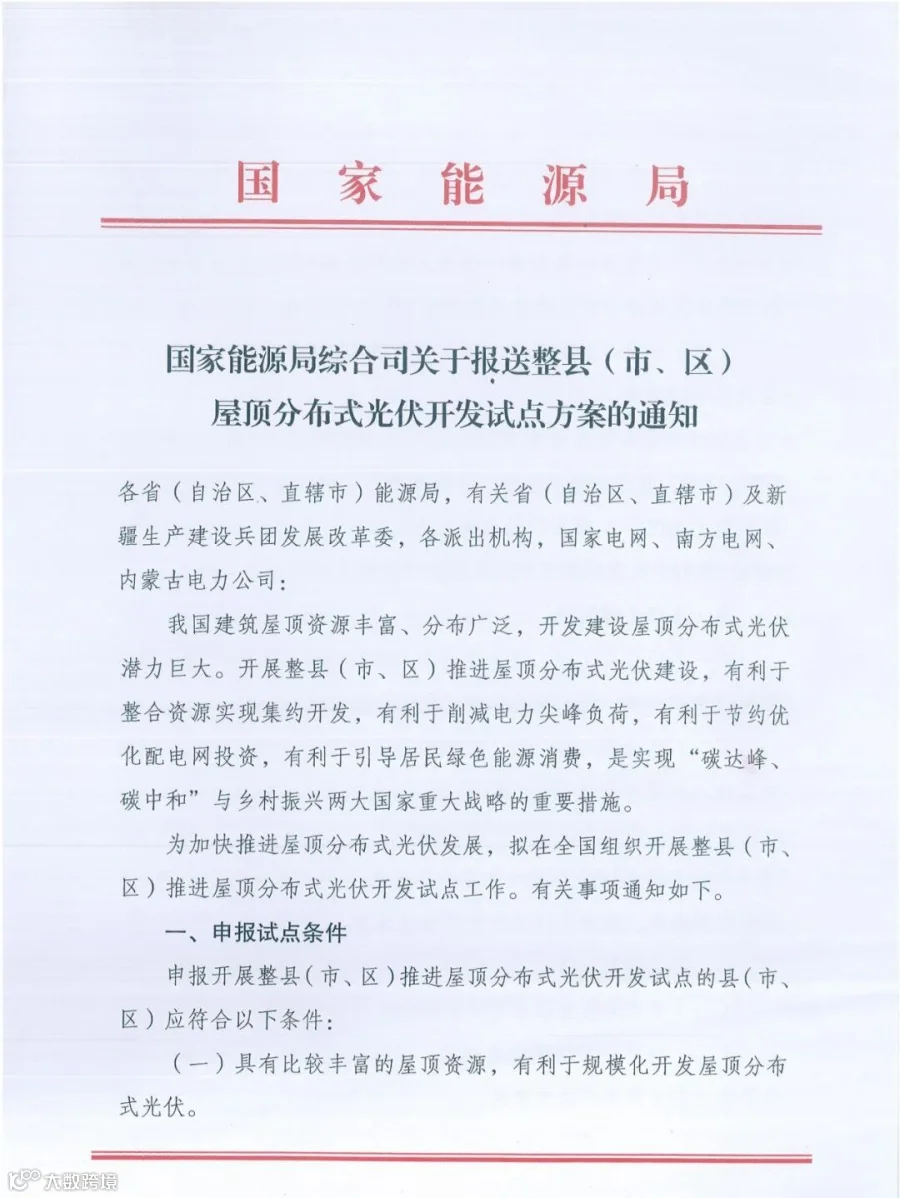 第四个文件:《关于报送整县(市、区)屋顶分布式光伏开发试点方案的通知》