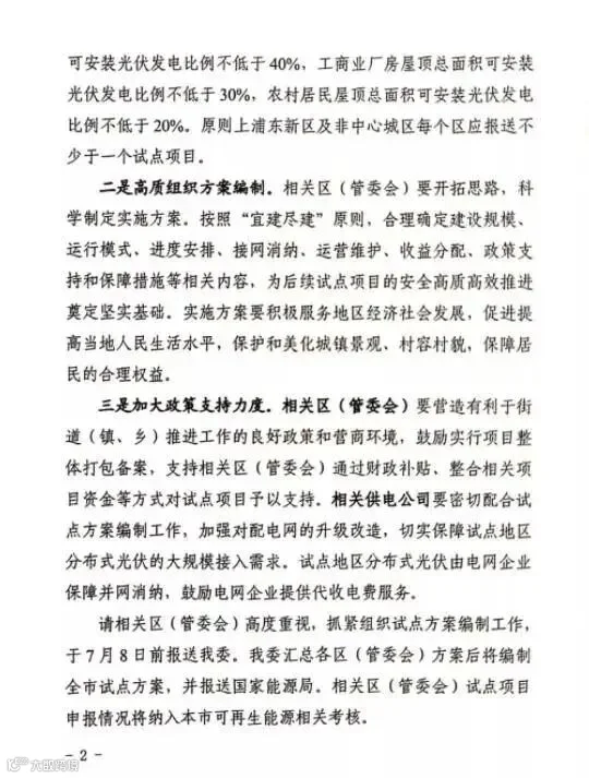 六、各地区务必要高度重视屋顶光伏电站建设工作,加强组织领导,汇集各方力量编写好试点方案,做好方案的可行性论证。方案以政府名义,于7月8日前报州发展和改革委员会( 能源局 )。我委审核后,报省能源局。